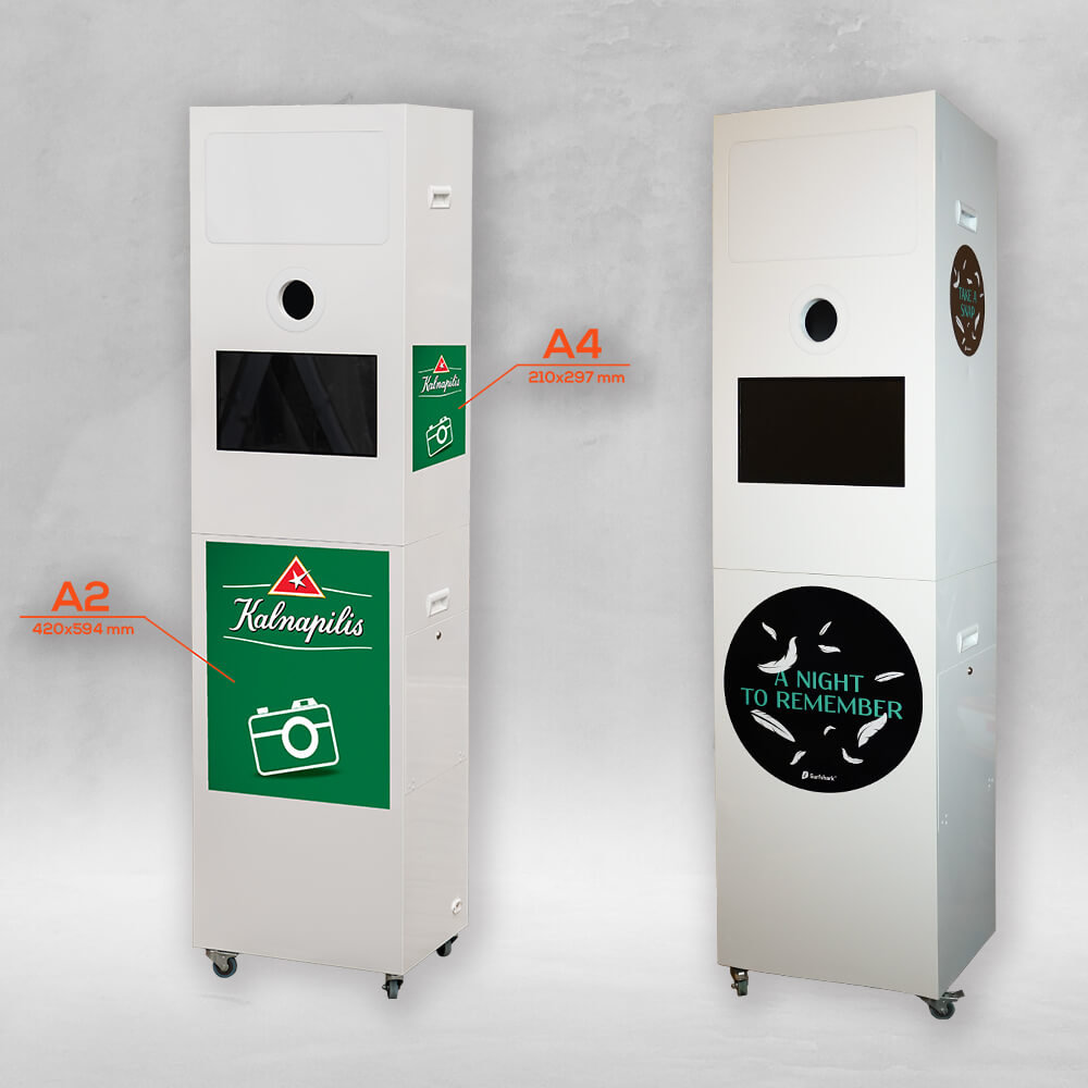 Ar keičiamas foto būdelės ir nuotraukų dizainas? Taip. Foto būdelę galima apklijuoti jūsų pageidaujamu dizainu. Kaina priklauso nuo lipdukų dydžio ir kiekio. Galimas ir visos fotobūdelės apklijavimas. Nuotraukų rėmelio dizainą taip pat galima pakeisti pagal jūsų pageidavimus, ant kiekvienos nuotraukos uždedant logotipą, pageidaujamą šūkį ar kitą tekstą. Ši paslauga yra nemokama. Galimi įvairūs nuotraukų formatai: